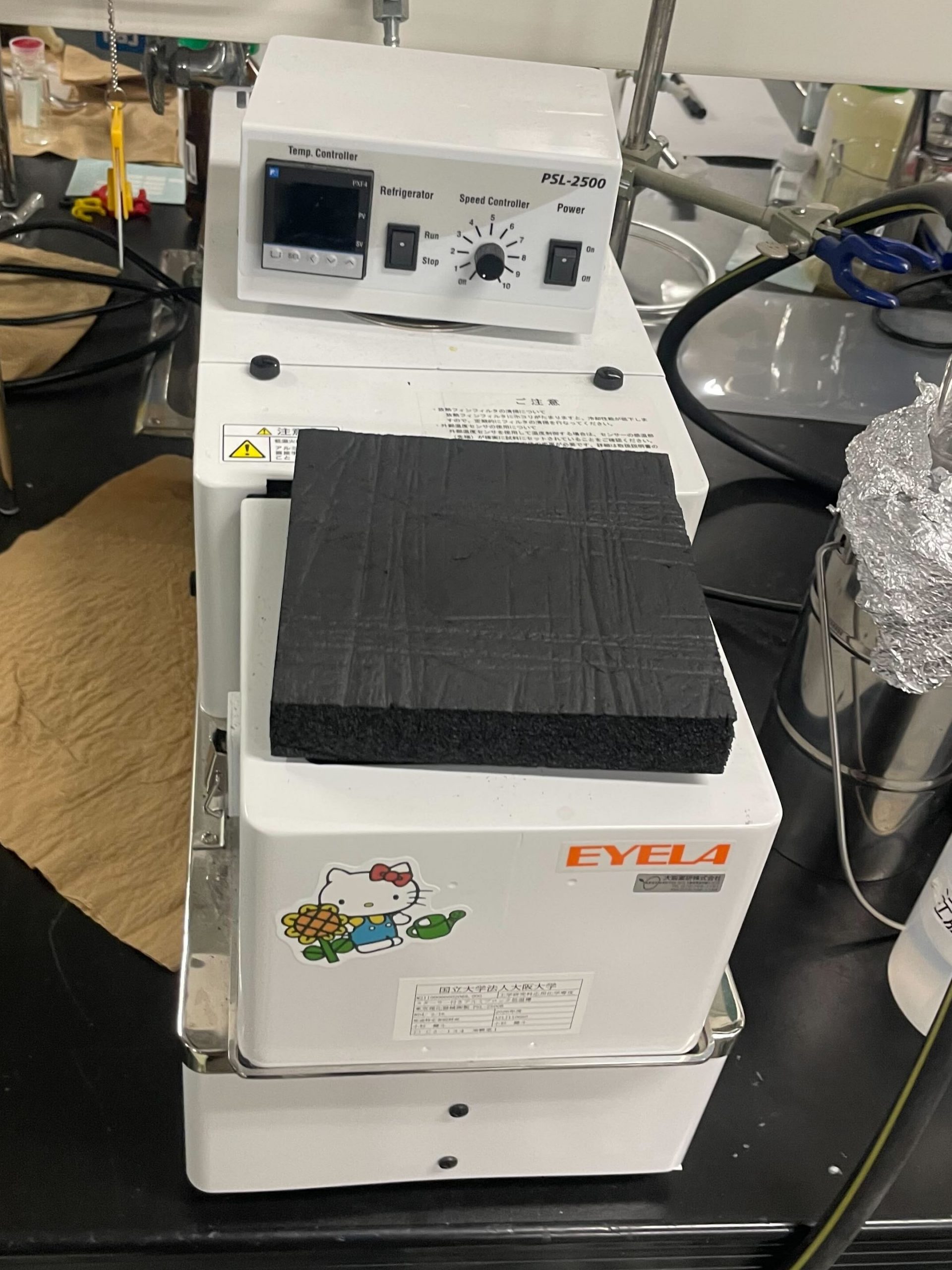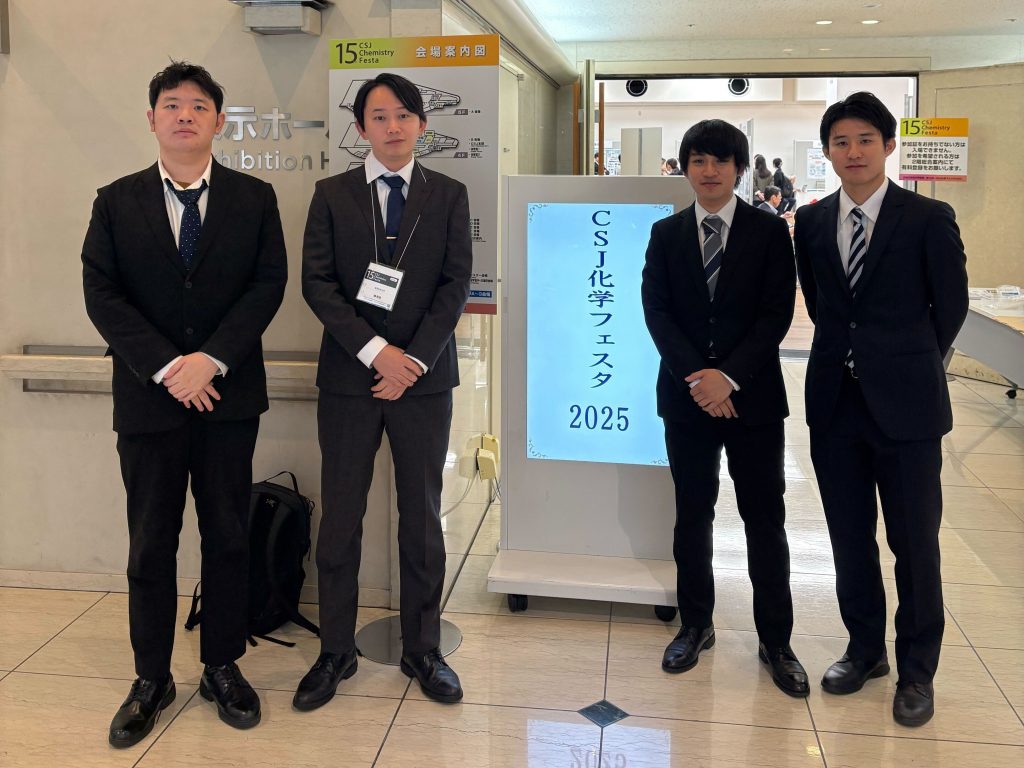 ギャラリー イベント 研究室の設備 カバーアート イベント 2025年度 2025.10.22-24 第15回CSJ化学フェスタに参加しました 2025.10.22-24 第15回CSJ化学フェスタに参加しました 2025.10.17 Simonの歓迎会を行いました。 2025.09.22 Prof. Karsten Meyer (Friedrich-Alexander-Universität)の講演会を行いました。 2025.09.15-18. 錯体化学会 第75回討論会に参加しました。 2025.08.29 黄さん(M1)が錯体化学若手の会夏の学校でポスター賞、Chemistry Letters Young Researcher Awardを受賞しました。 2025.08.27-29 錯体化学若手の会夏の学校2025に参加しました。 2025.08.05 今井くん(D2)がスポーツ功労者顕彰を受賞しました。 2025.06.27 院試壮行会を行いました。 2025.06.07 研究室メンバー全員で集合写真を撮りました。 2025.05.25-30 小杉先生(助教)がISMSC2025に参加しました。 2025.05.25-30 黄さん(M1)がISMSC2025に参加しました。 2025.05.25-30 北田くん(D2)がISMSC2025に参加しました。 2025.4.4 新入生歓迎会を行いました。 過去のイベント 2024年度 イベント 研究室の設備 ガスクロマトグラフィー (SHIMADZU GC-2014AT) GC-MS (SHIMADZU GCMS-QP2020NX) 質量分析 (SHIMADZU MALDI-8030) マイクロウェーブ反応装置 (Biotage Initiator) 自動精製システム (Biotage Isolera One) 低温反応装置 (EYELA PSL-2500) 光照射装置 NMR (共用装置) UV-Vis分光光度計 (SHIMADZU UV-3600) 蛍光分光光度計 (SHIMADZU RF-6000) グローブボックス (UNICO UL-10000AC) マイクロ天秤 (METTLER TOLEDO XPR6UD5) エバポレーター (Buchi Rotavapor R-180) エバポレーター (EYELA N-1300) 電気化学測定装置 (BAS ALS) カバーアート