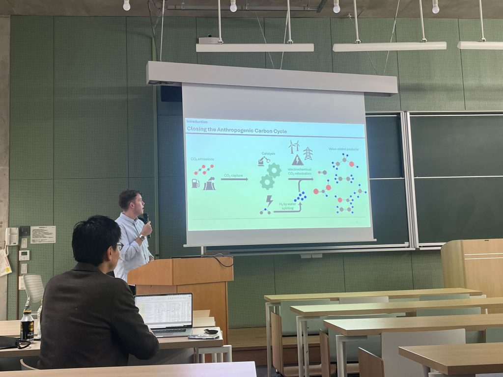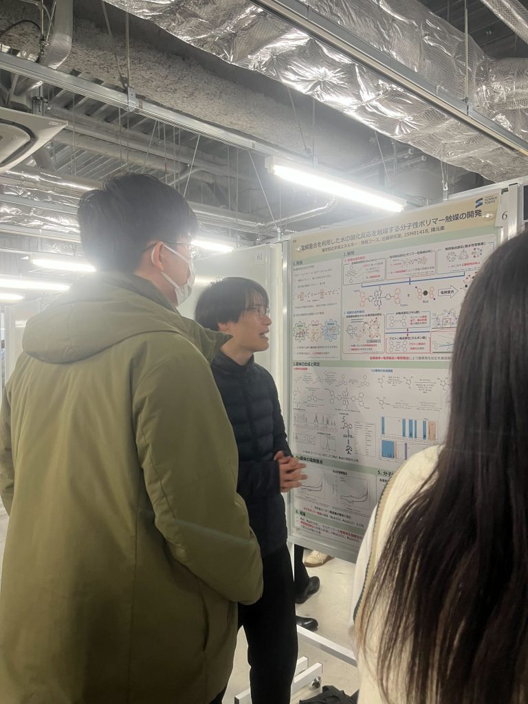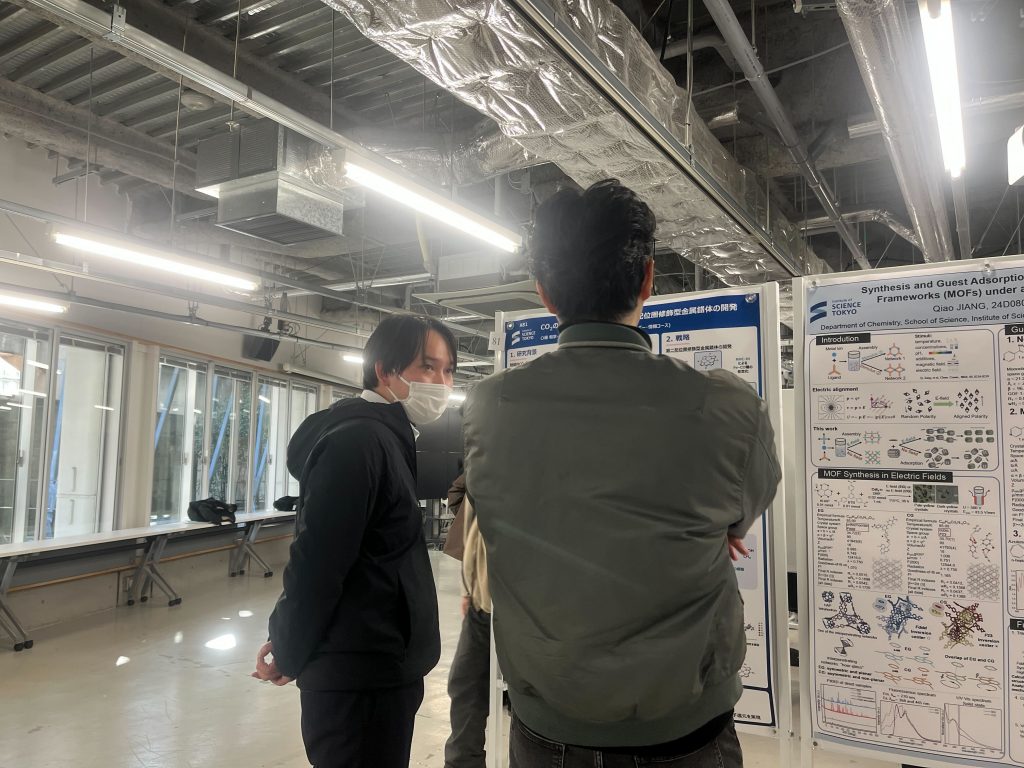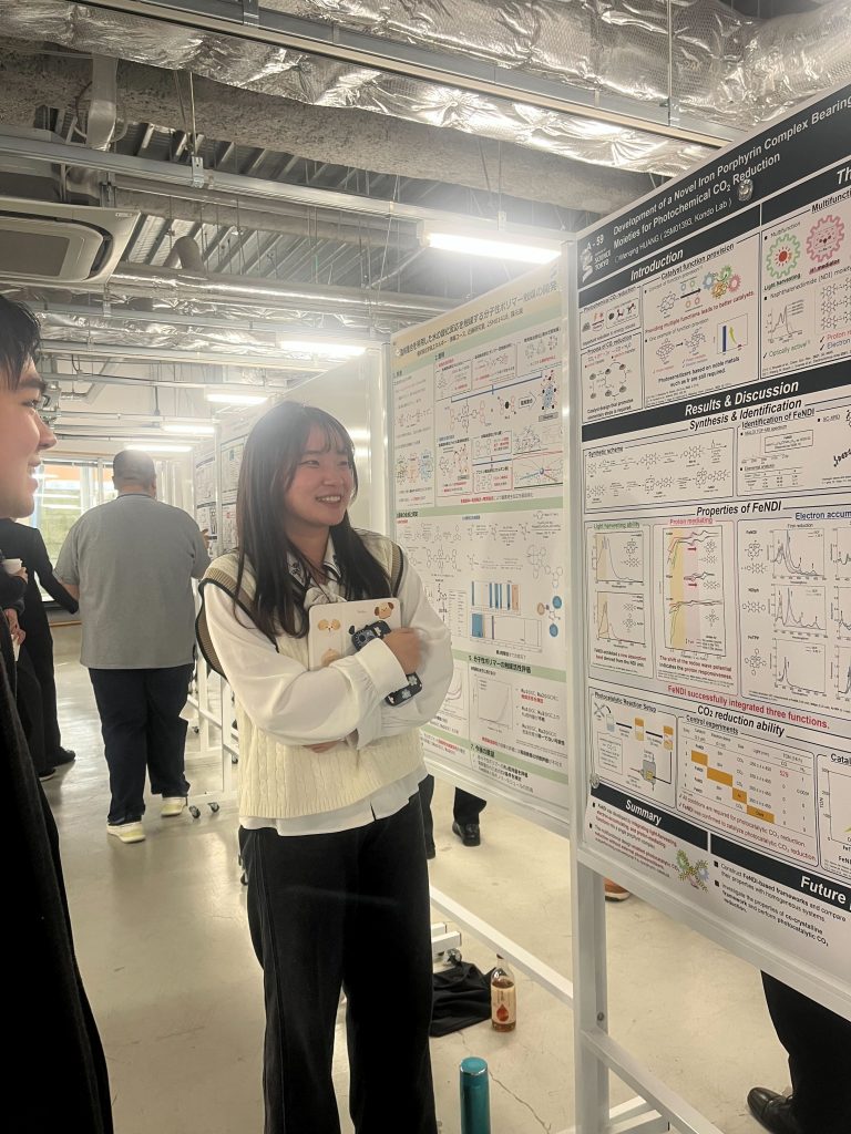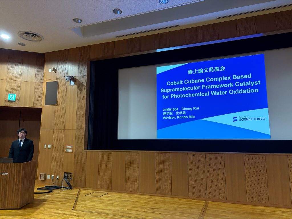 ギャラリー イベント 研究室の設備 カバーアート イベント 2025年度 2026.02.13 楊さん(D2)が博士中間発表を行いました。 2026.02.13 陳くん(M1)が修士中間発表を行いました。 2026.02.13 橘さん(M1)が修士中間発表を行いました。 2026.02.13 安田くん(M1)が修士中間発表を行いました。 2026.02.13 黄さん(M1)が修士中間発表を行いました。 2026.02.10 程くん(M2)から先生たちへの2年間のお礼 2026.02.10 Simonへの記念品プレゼント 2026.02.10 修論お疲れ会とSimonの送別会を行いました。 2026.02.10 SimonがYSEPプロジェクトの最終発表を行いました。 2026.02.03 程くん(M2)が修論発表会を行いました。 2026.01.08 黄さん(M1)が東京科学大学 学生リーダーシップ賞を受賞しました。 2025.12.26 河野研と合同で忘年会を行いました。 2025.12.15-20 Pasifichem2025に参加しました。 2025.12.02 エネルギーイノベーション協創プロジェクト, エネルギー学理実践研究Aで今井くん、王くん、黄さんが受賞しました。 2025.11.27 第15回CSJ化学フェスタで安田くん(M1)が優秀ポスター発表賞を受賞しました。 2025.10.22-24 第15回CSJ化学フェスタに参加しました。 2025.10.22-24 第15回CSJ化学フェスタに参加しました。 2025.10.17 Simonの歓迎会を行いました。 2025.09.22 Prof. Karsten Meyer (Friedrich-Alexander-Universität)の講演会を行いました。 2025.09.15-18. 錯体化学会 第75回討論会に参加しました。 2025.08.29 黄さん(M1)が錯体化学若手の会夏の学校でポスター賞、Chemistry Letters Young Researcher Awardを受賞しました。 2025.08.27-29 錯体化学若手の会夏の学校2025に参加しました。 2025.08.05 今井くん(D2)がスポーツ功労者顕彰を受賞しました。 2025.06.27 院試壮行会を行いました。 2025.06.07 研究室メンバー全員で集合写真を撮りました。 2025.05.25-30 小杉先生(助教)がISMSC2025に参加しました。 2025.05.25-30 黄さん(M1)がISMSC2025に参加しました。 2025.05.25-30 北田くん(D2)がISMSC2025に参加しました。 2025.4.4 新入生歓迎会を行いました。 過去のイベント 2024年度 イベント 研究室の設備 ガスクロマトグラフィー (SHIMADZU GC-2014AT) GC-MS (SHIMADZU GCMS-QP2020NX) 質量分析 (SHIMADZU MALDI-8030) マイクロウェーブ反応装置 (Biotage Initiator) 自動精製システム (Biotage Isolera One) 低温反応装置 (EYELA PSL-2500) 光照射装置 NMR (共用装置) UV-Vis分光光度計 (SHIMADZU UV-3600) 蛍光分光光度計 (SHIMADZU RF-6000) グローブボックス (UNICO UL-10000AC) マイクロ天秤 (METTLER TOLEDO XPR6UD5) エバポレーター (Buchi Rotavapor R-180) エバポレーター (EYELA N-1300) 電気化学測定装置 (BAS ALS) カバーアート