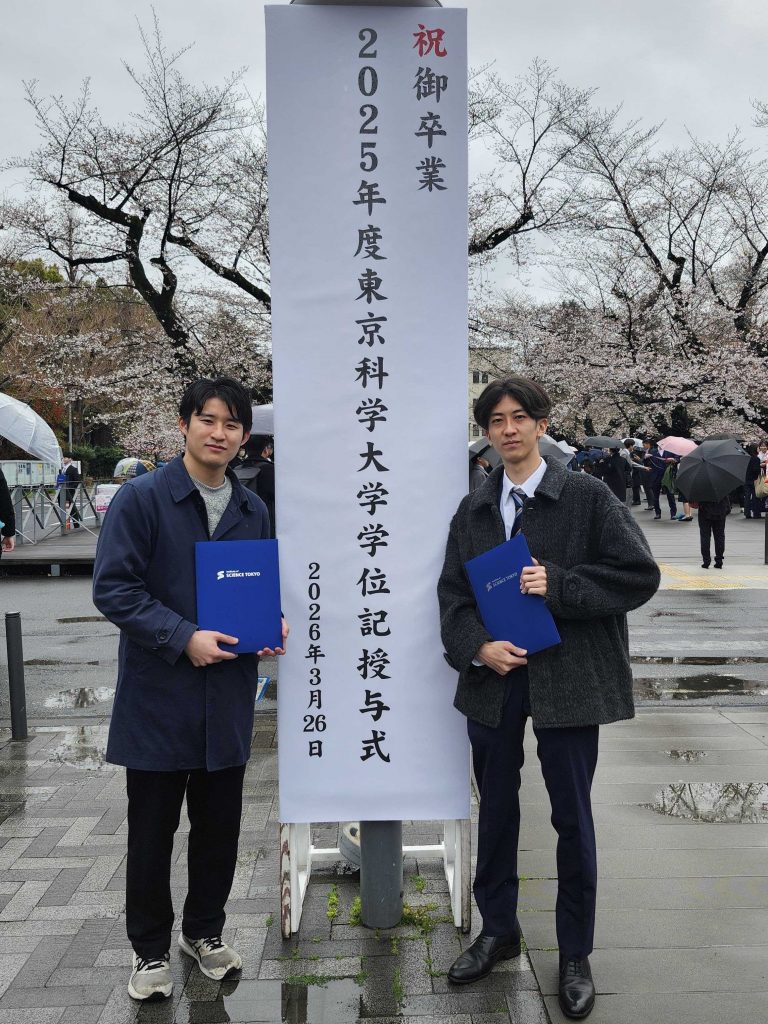 2026.03.26 押領司さん(B4)と永井さん(B4)の卒業式が行われました。