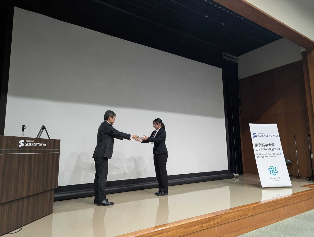 エネルギーイノベーション協創プロジェクトで黄さん(M1)がBest Presentation Awardを、王くん(M2)がPresentation Awardを受賞しました。 エネルギーイノベーション協創プロジェクトで黄さん(M1)がBest Presentation Awardを、王くん(M2)がPresentation Awardを受賞しました。 2025.12.2